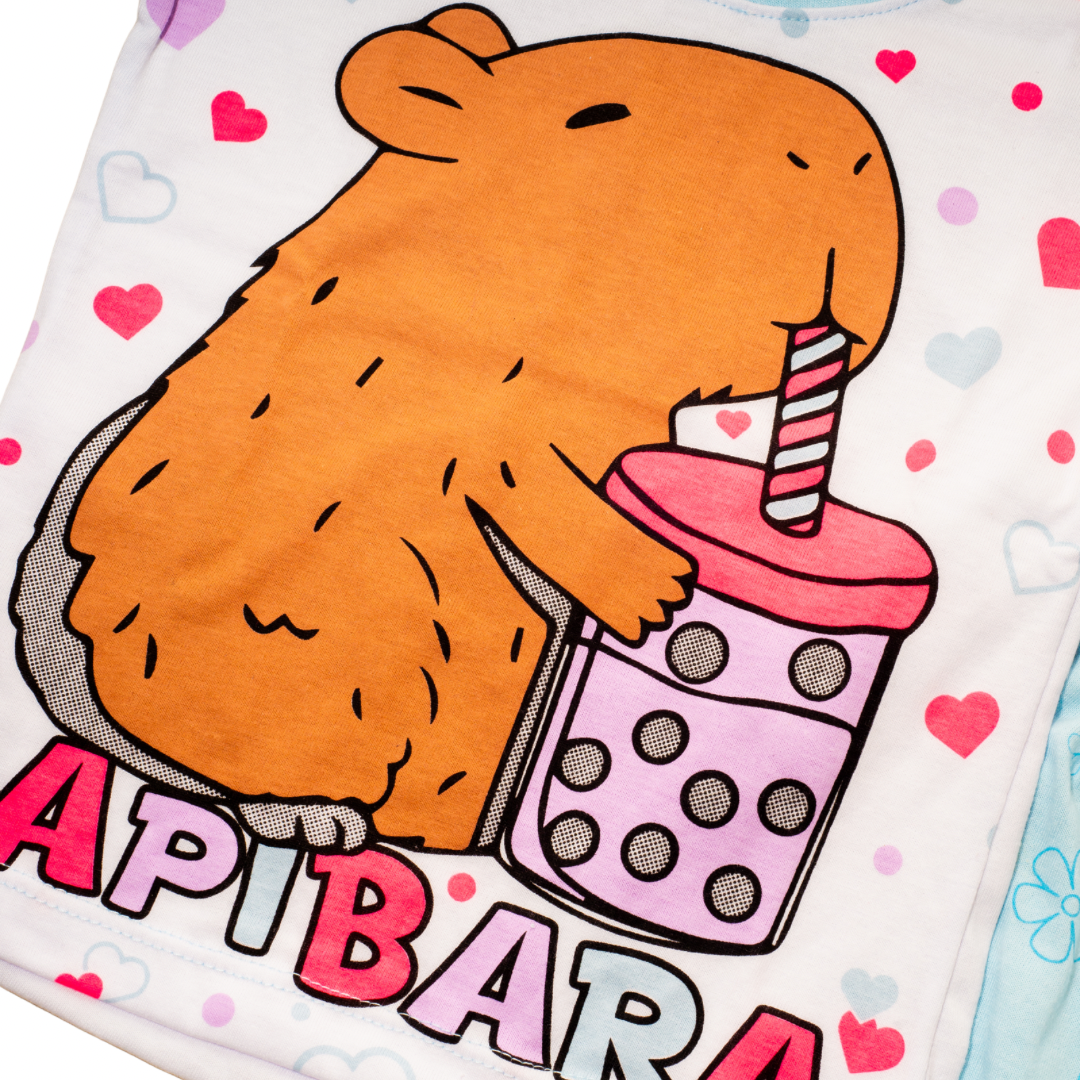 Nuestra Pijama esta confeccionada en Algodón suave, de Manga corta y Pantalón largo es perfecta para mantener a tu hija fresca durante el descanso y llena de ternura con su diseño único.